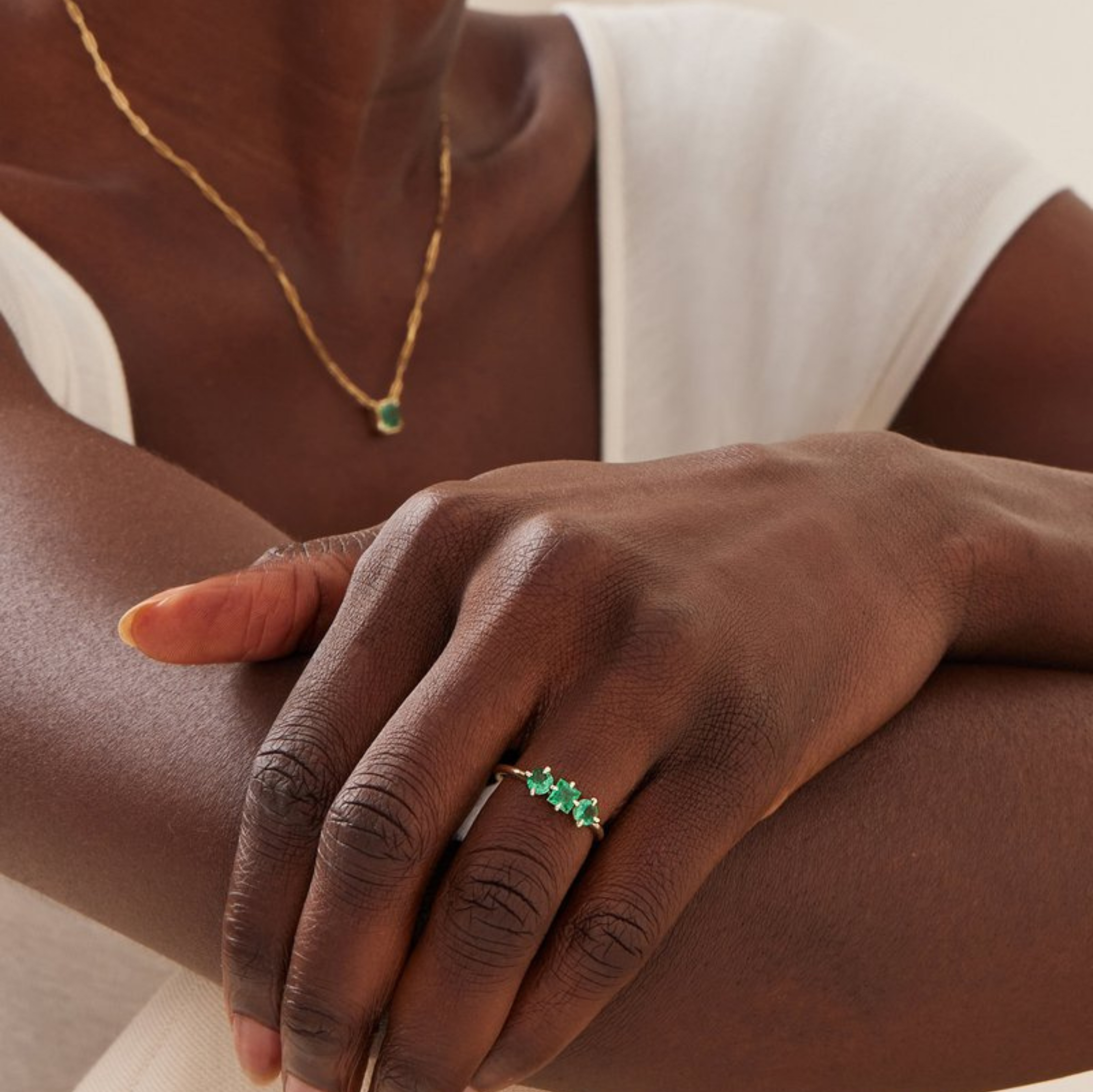 Anel de Ouro 18 K com Esmeraldas Naturais em Gota