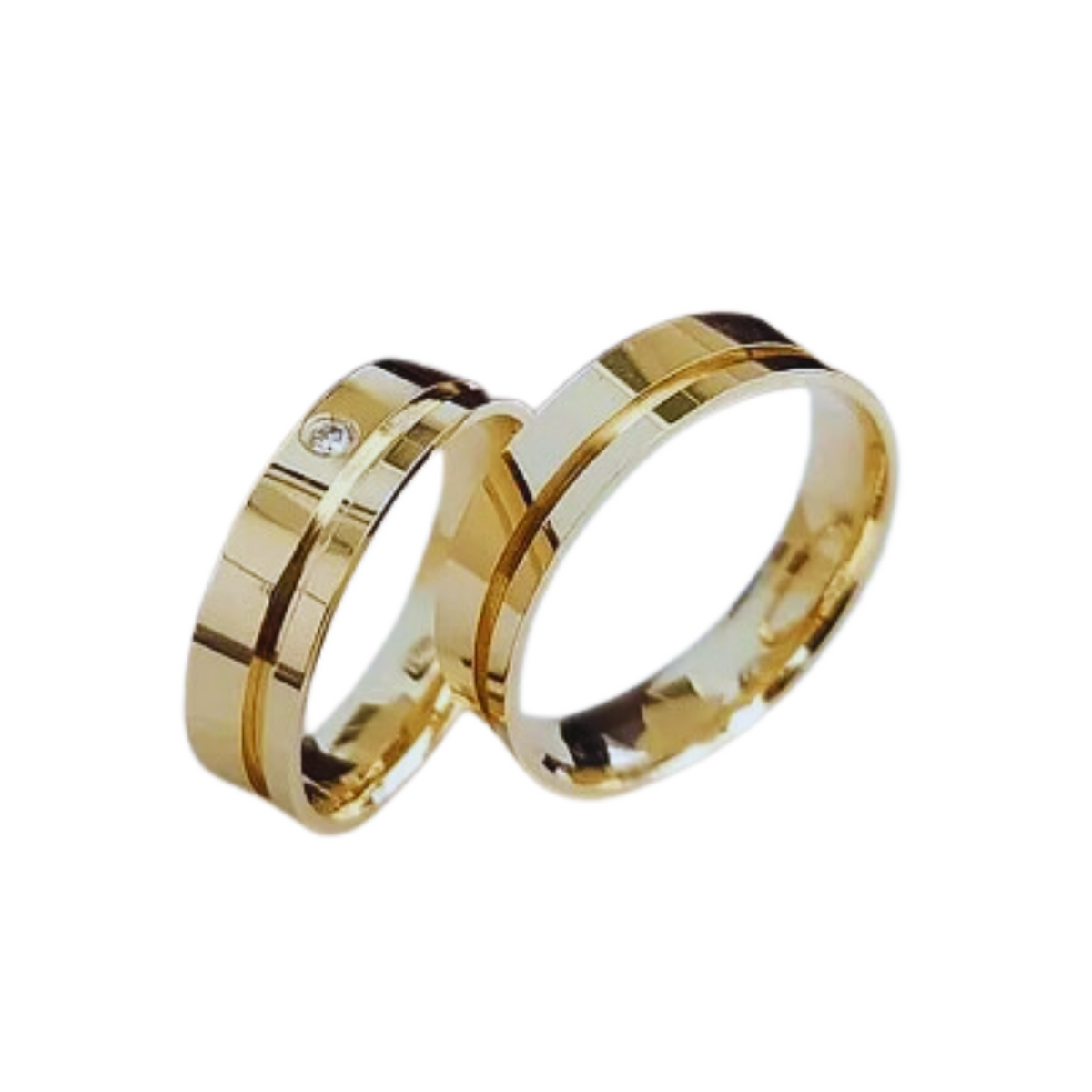 Alianças casamento 5 mm de Ouro 18k com friso lateral
