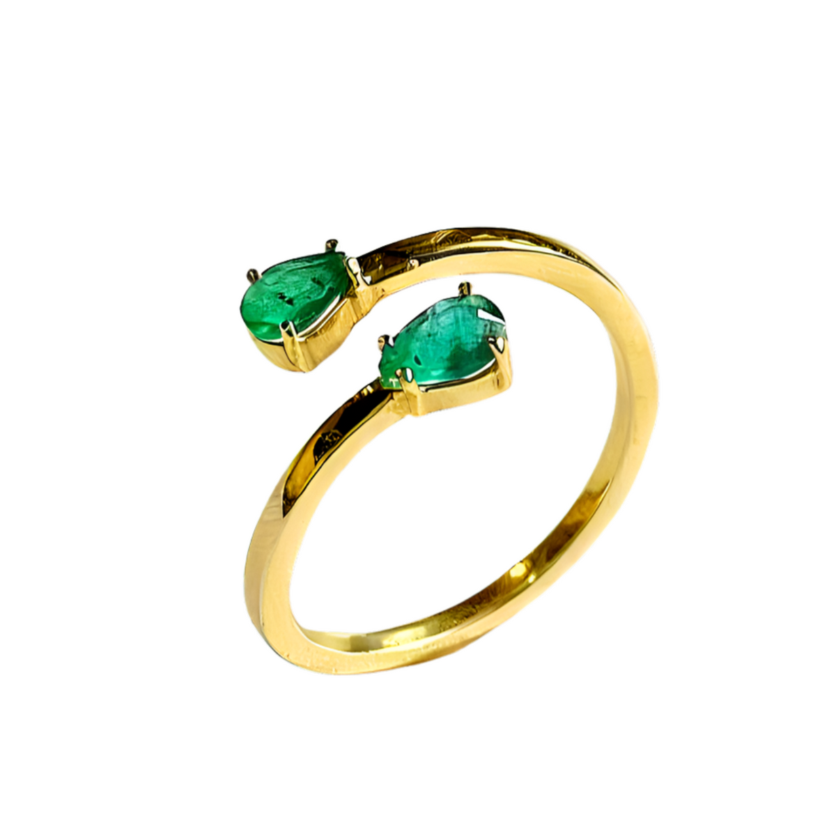 Anel de Ouro 18 K com Esmeraldas Naturais em Gota