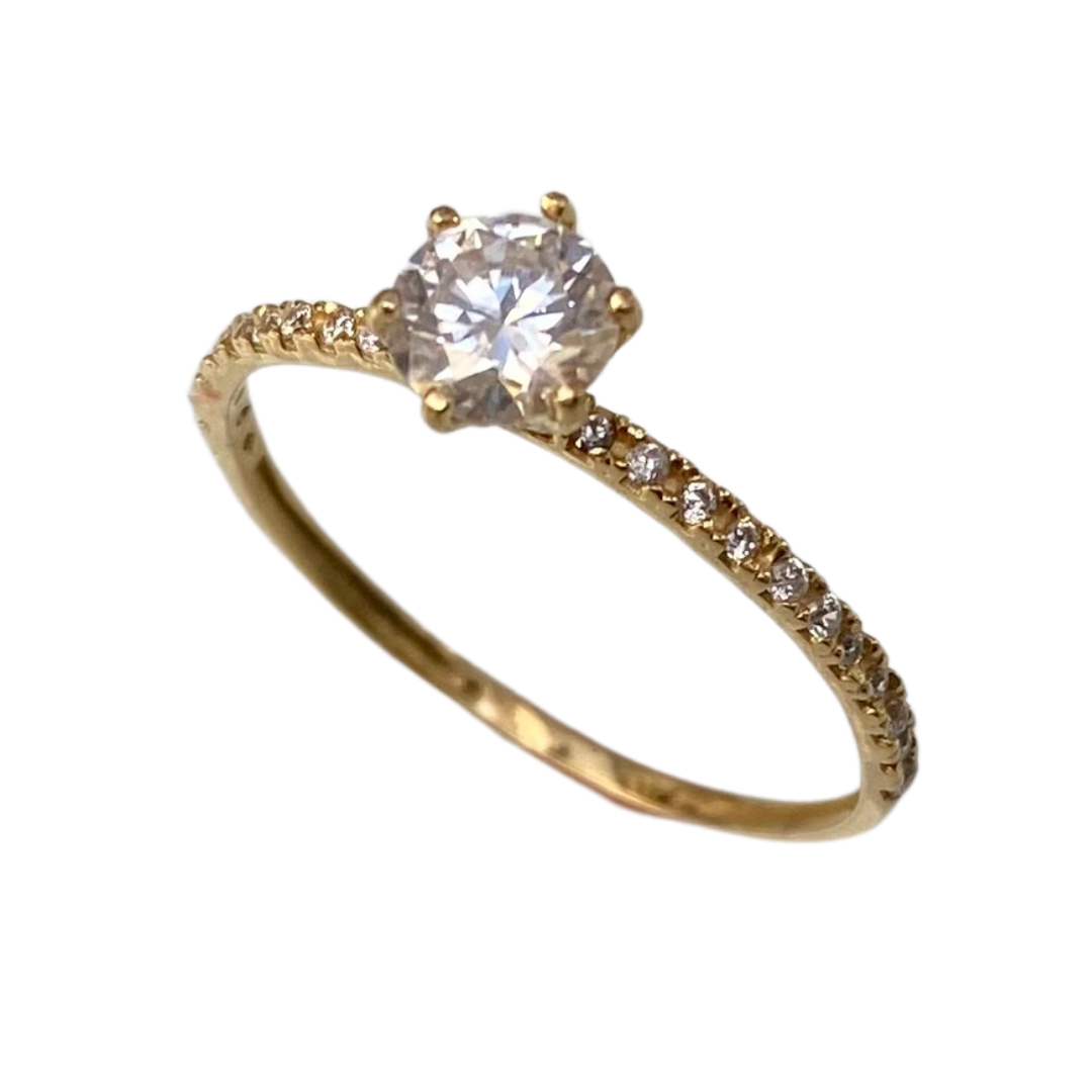 - 1 Anel de Ouro 18K com Moissianita e zircônia no aro
