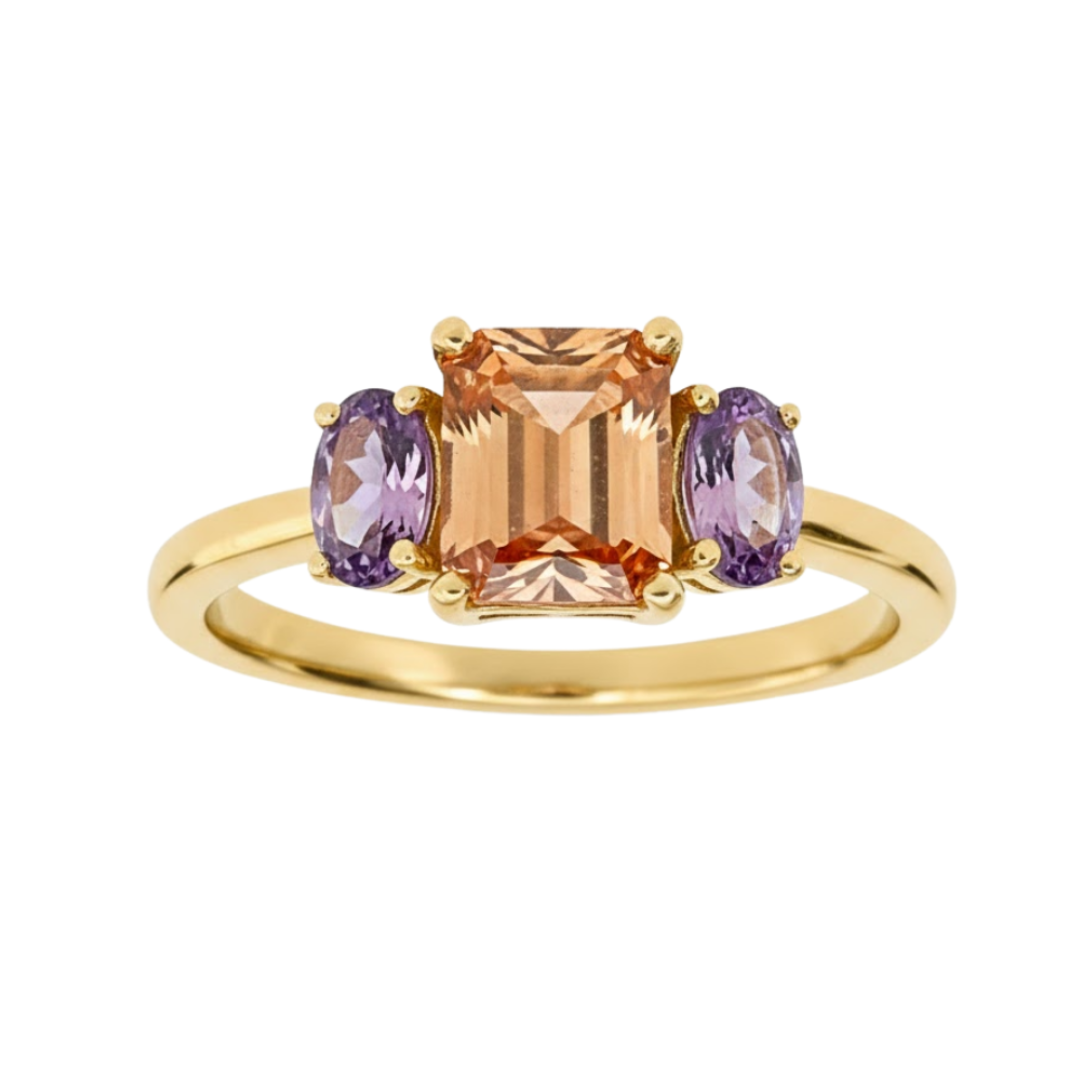 Anel em Ouro 18K com Topázio Imperial e Ametistas Naturais