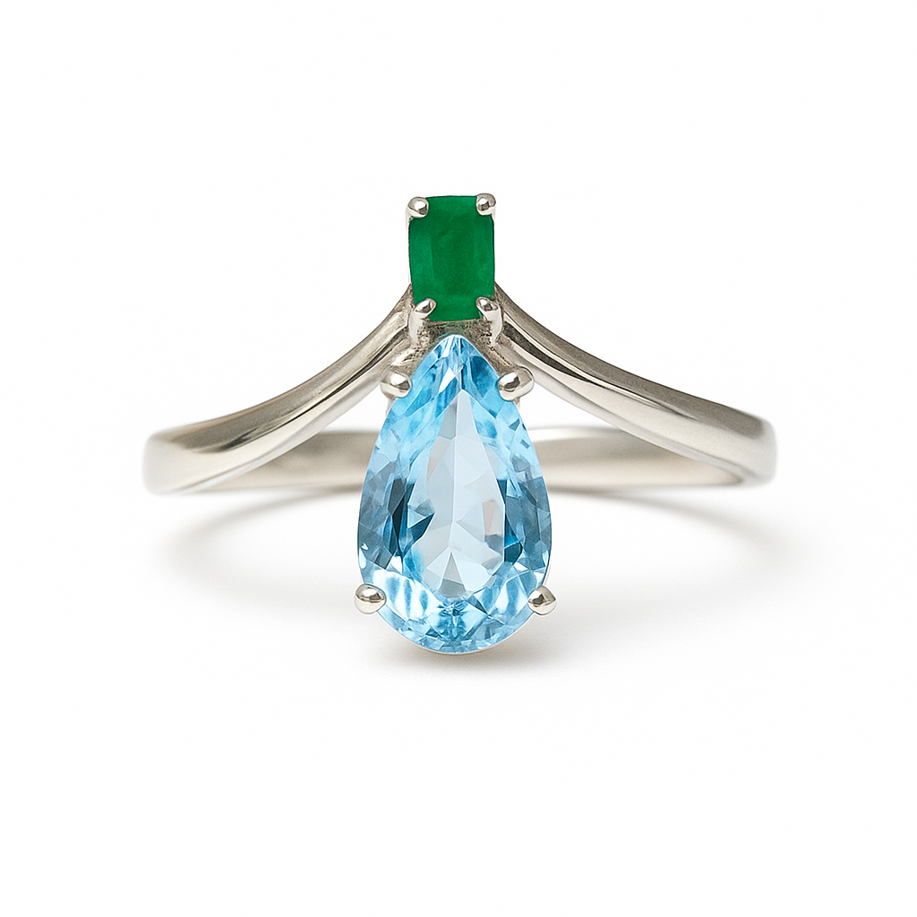 Anel de Prata 950 com Água-Marinha e Esmeralda Naturais