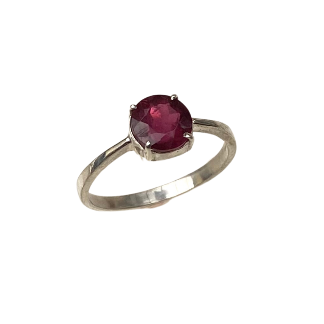 Anel de Prata 950 com Turmalina Vinho Natural Redonda
