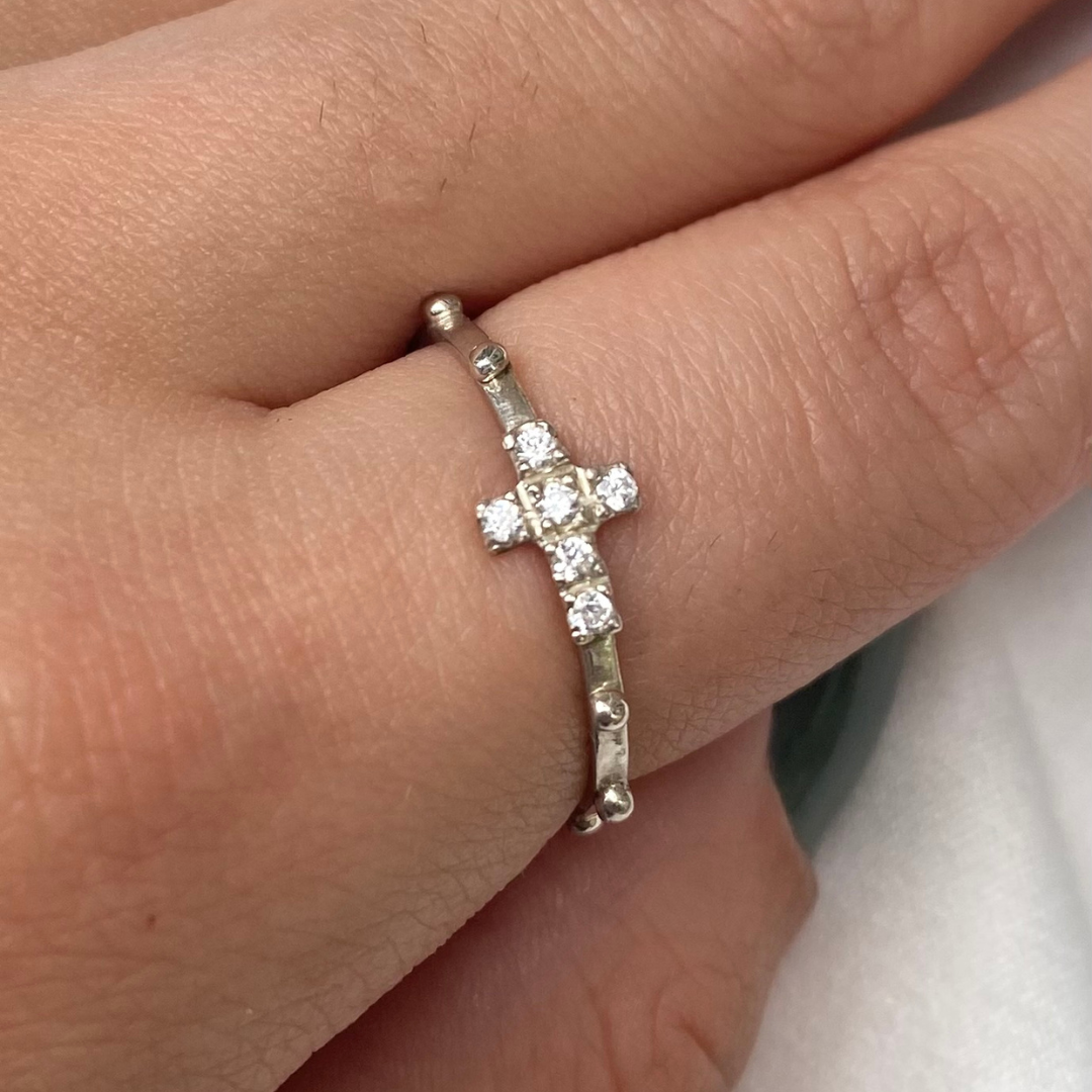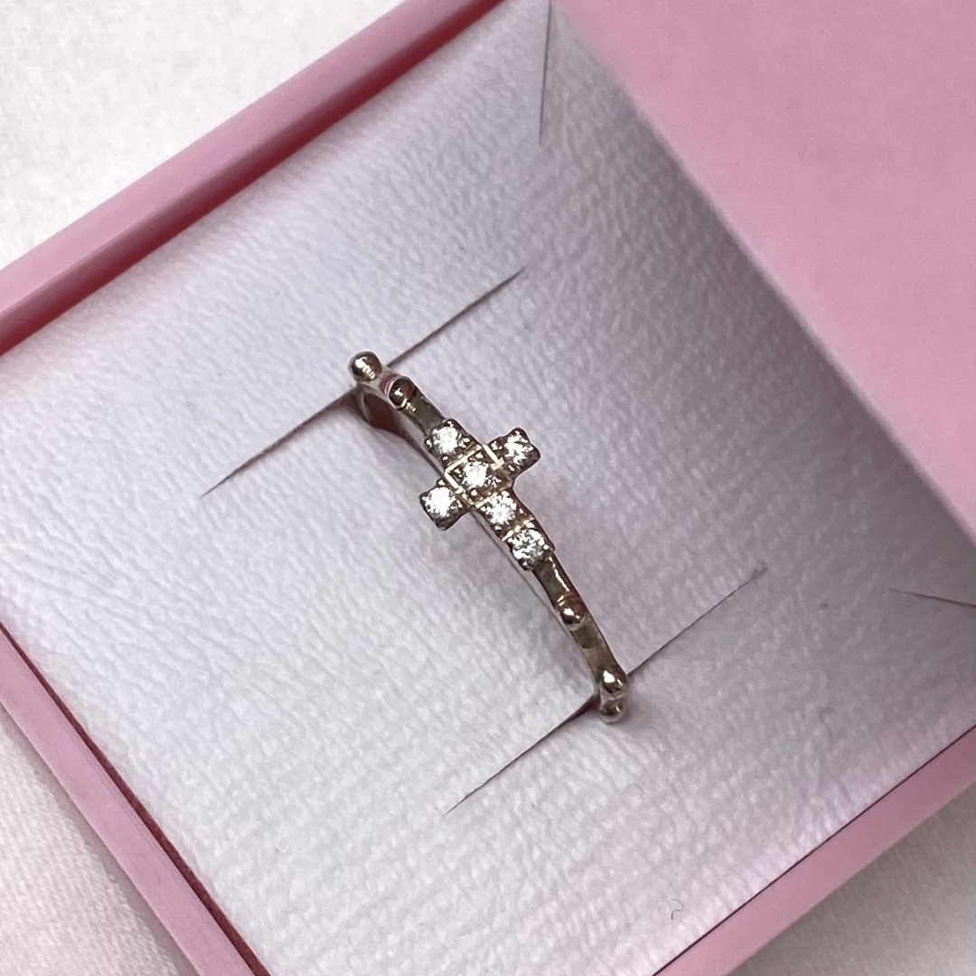 Delicadeza, brilho e sofisticação se encontram neste anel cuidadosamente elaborado para destacar sua beleza e personalidade. Um design clássico e atemporal com detalhes que garantem conforto absoluto (aro anatômico), anel modelo cruz / terço.