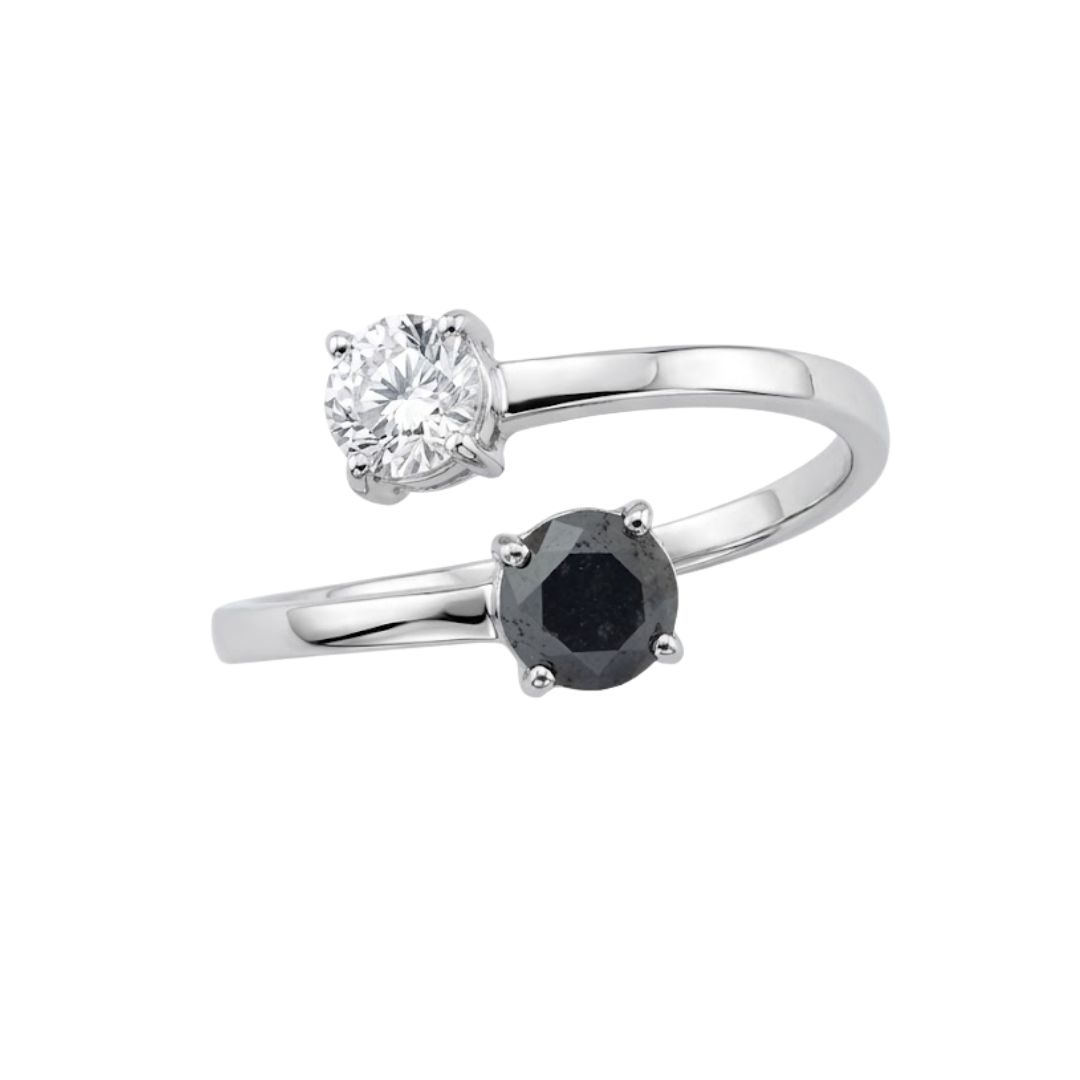 Anel em Ouro Branco 18K com Diamante Branco Natural e Diamante Negro – 1 ct (0,5 ct cada)