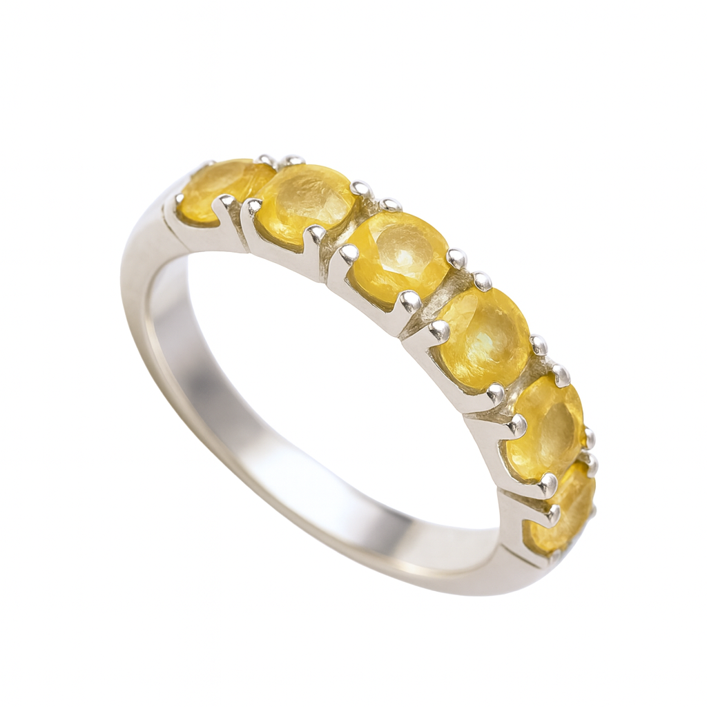 Anel Meia Aliança de Prata 950 com Citrinos Naturais