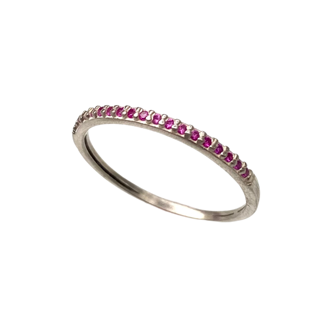 Anel Meia Aliança de Prata 950 com Zircônia Rosa
