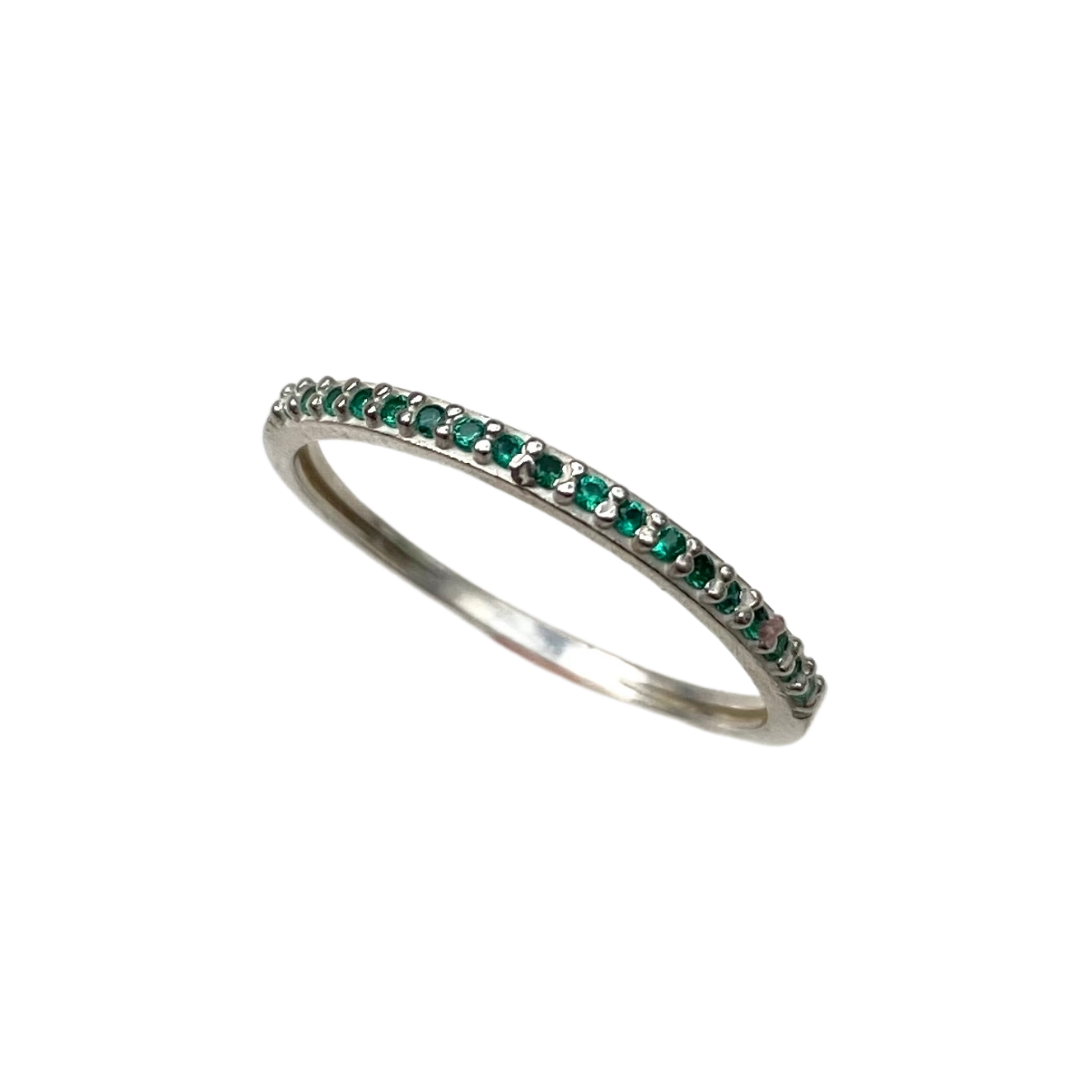 Anel Meia Aliança de Prata 950 com Zircônia Verde