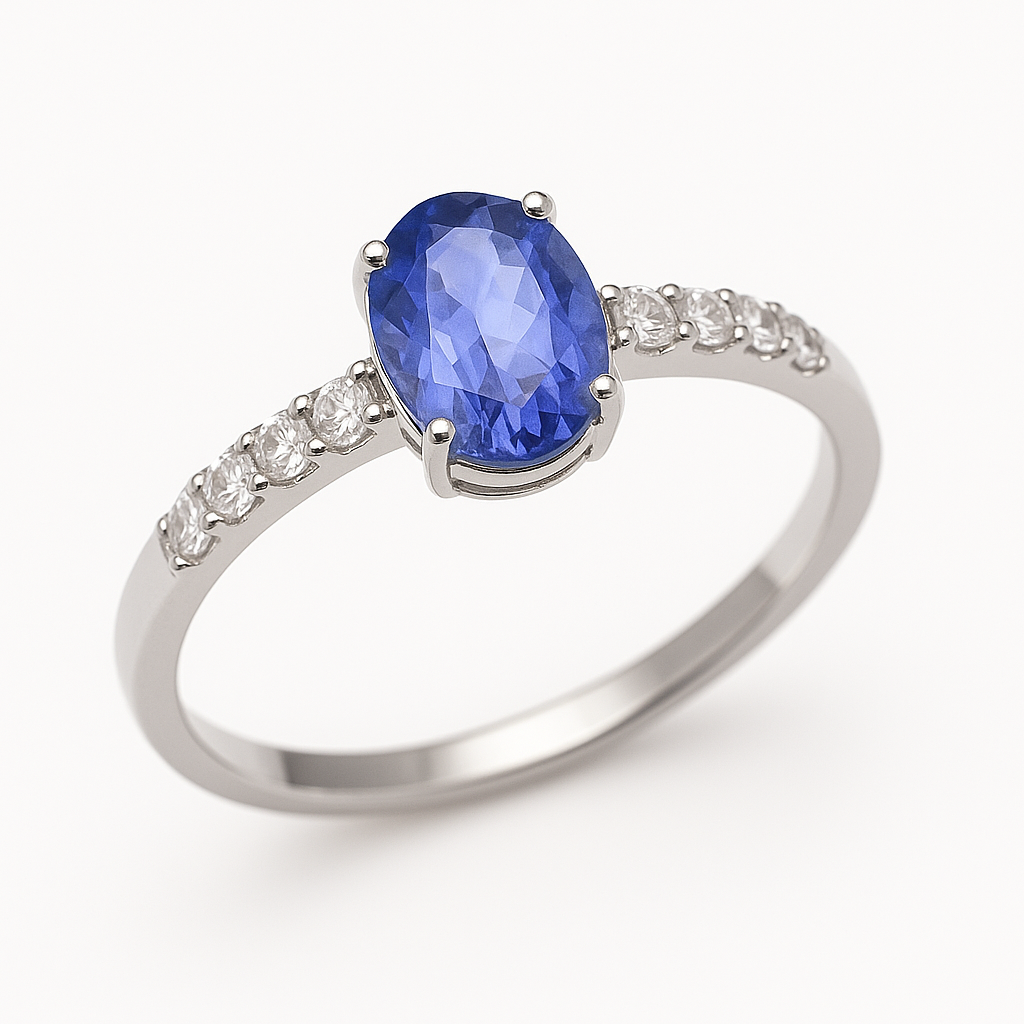 Anel ouro branco 18K com Tanzanita Natural e diamantes