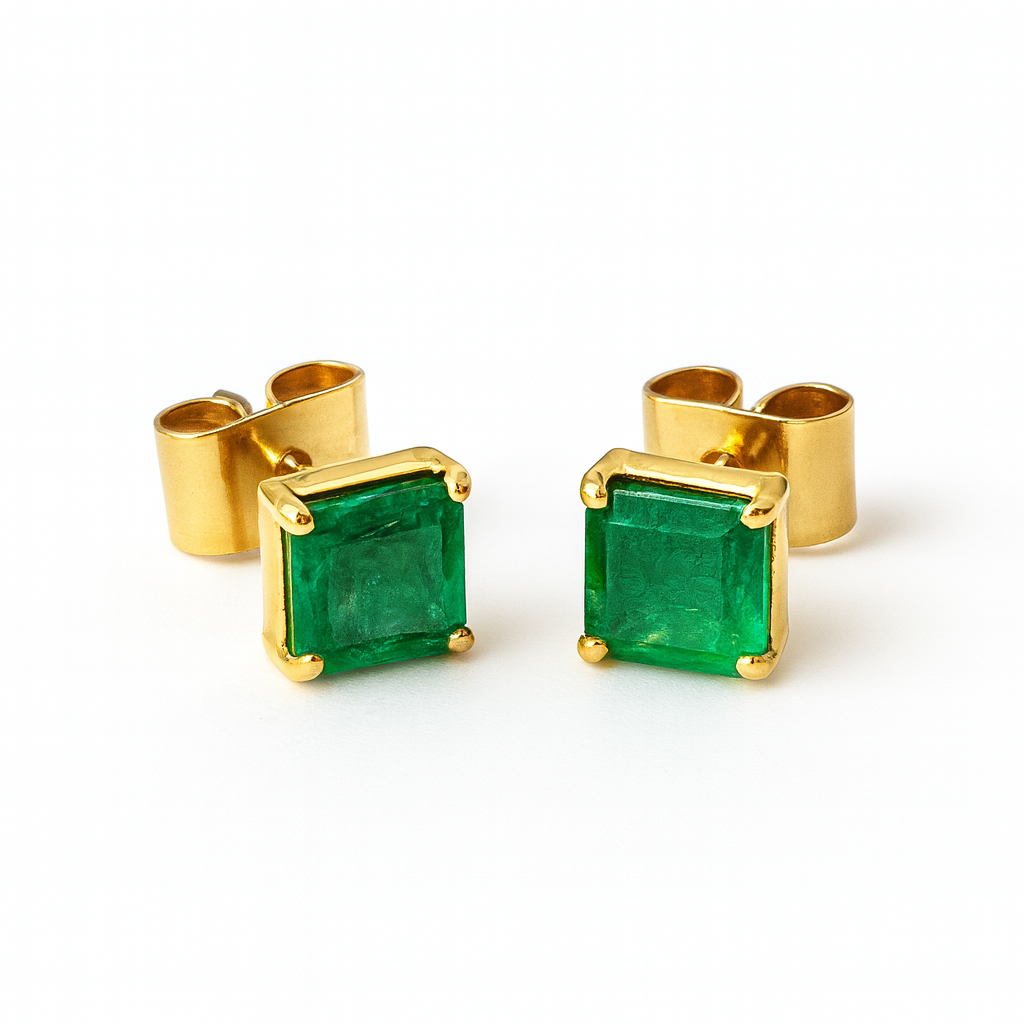 Um modelo delicado e elegante, com esmeraldas naturais em lapidação quadrada. Uma peça autêntica, criada para quem valoriza design refinado e a beleza única das gemas naturais.
