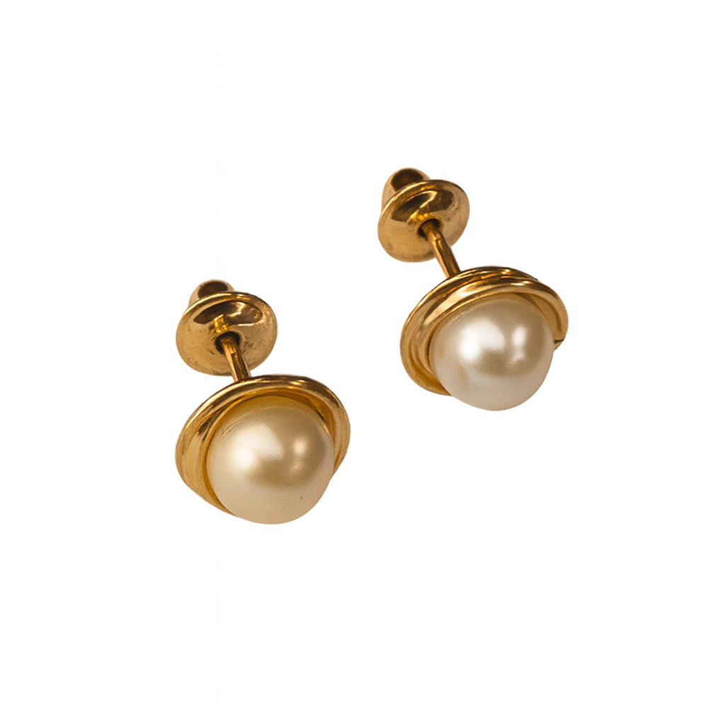 Brinco infantil confeccionado no ouro amarelo 18k, com pérola natural.