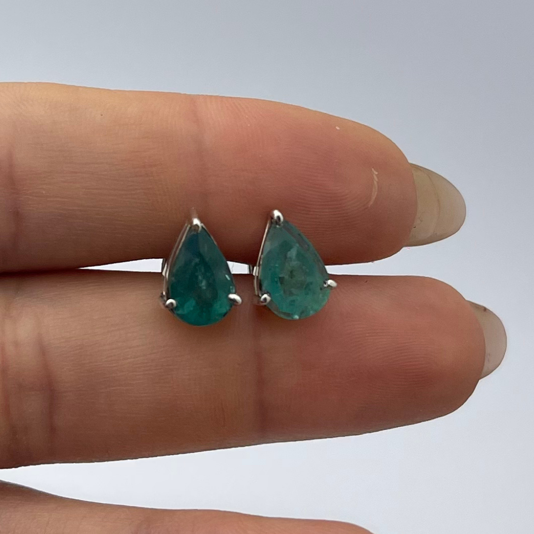 Um par de brincos delicado, elegante e atemporal, confeccionado em Prata 950 e adornado com esmeraldas naturais lapidação gota 10 × 7 mm, perfeitos para quem busca uma joia sofisticada, vibrante e cheia de presença.