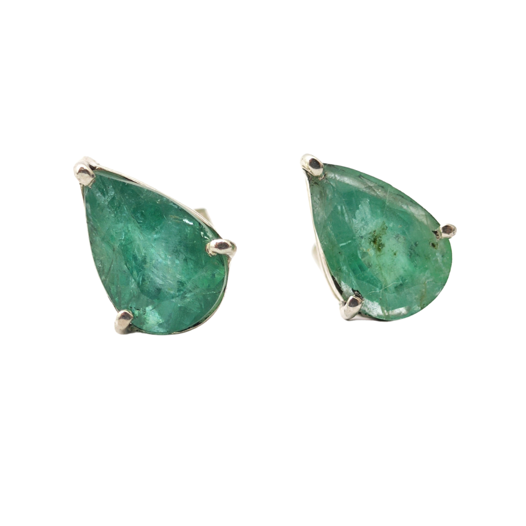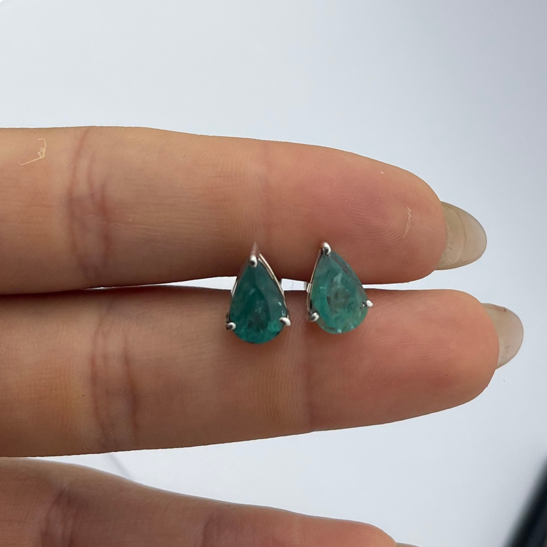 Brinco em Prata 950 com Esmeralda Natural – Lapidação Gota • 10 × 7 mm
