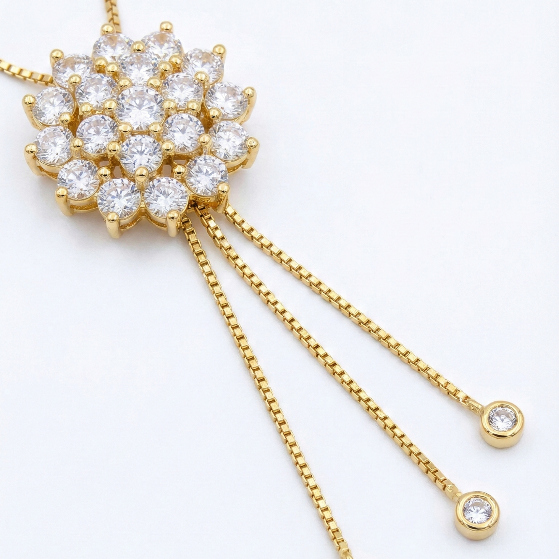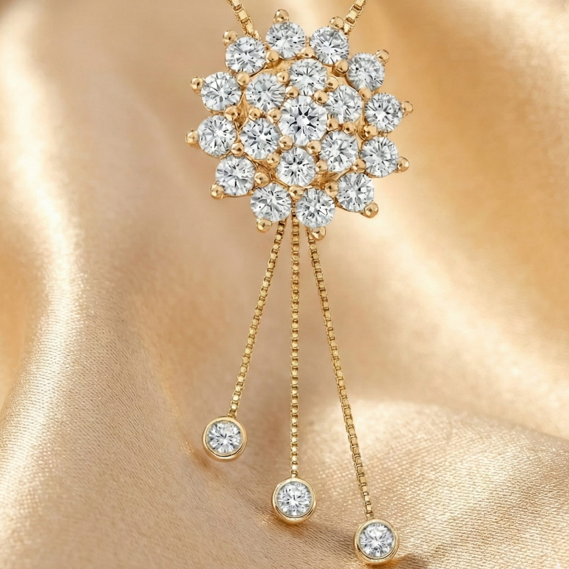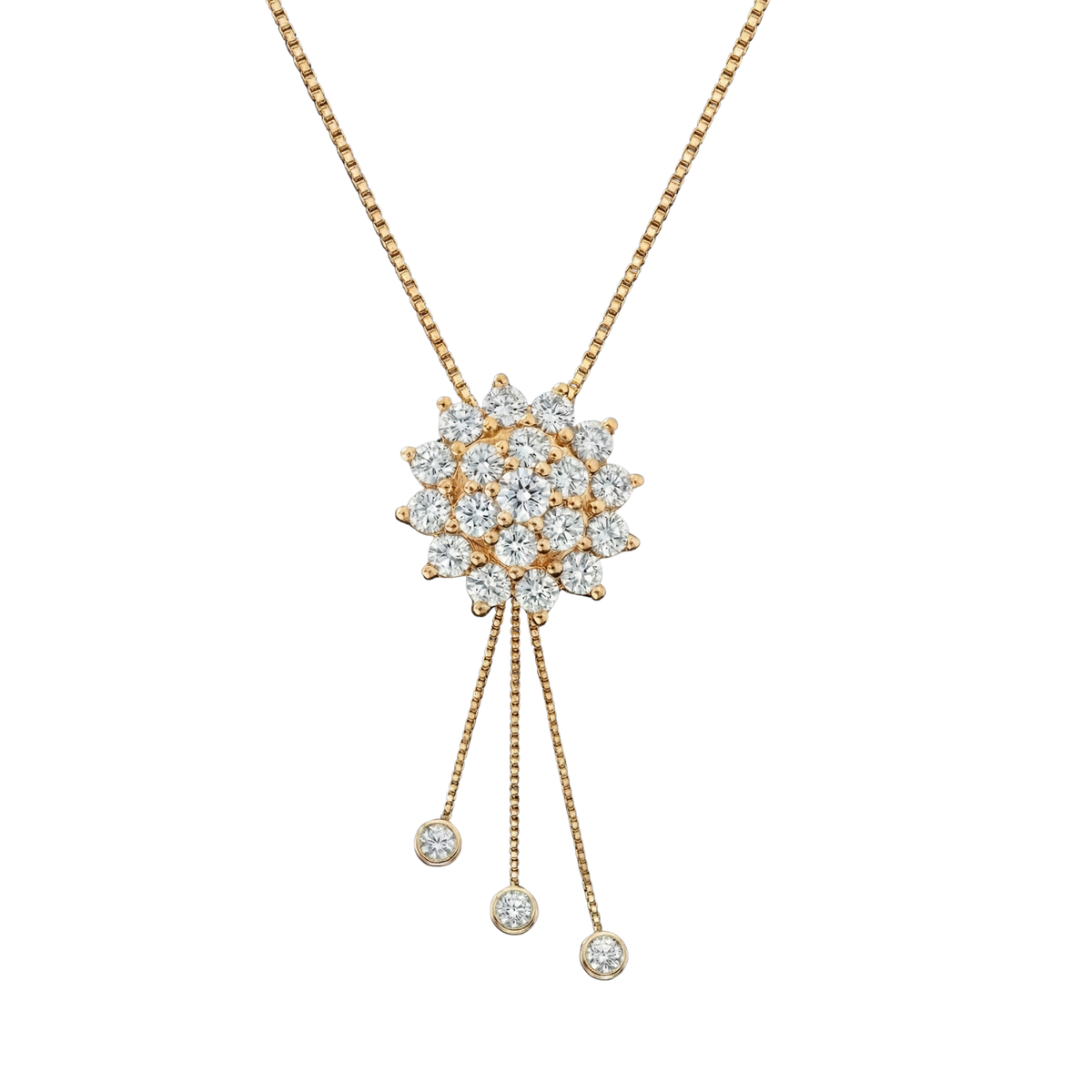 Colar Flor de Diamantes (19 pedras de 3 pontos) em Ouro Amarelo 18K com Cascata Removível