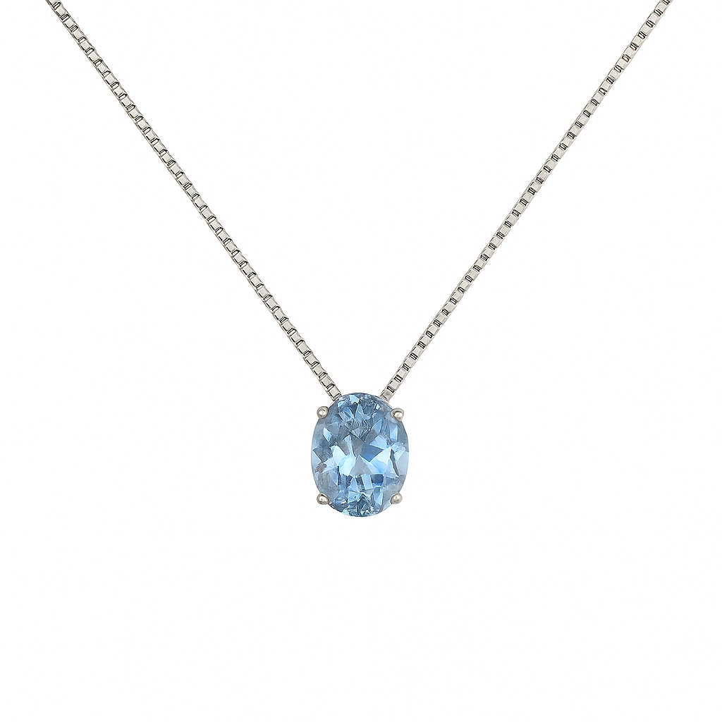 - Design clássico e refinado, confeccionado em prata 950 com pingente adornado por água marinha natural em lapidação oval, que realça sua beleza única.