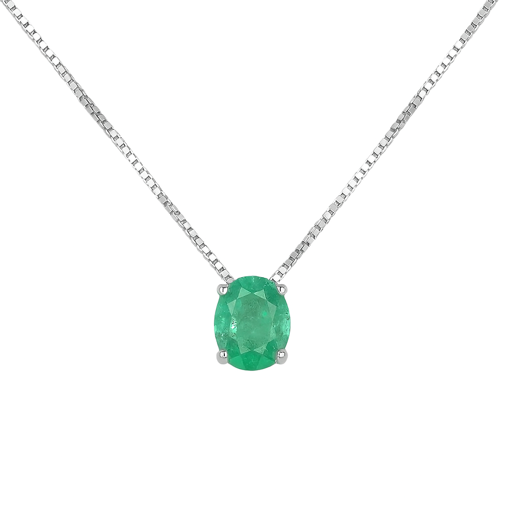 Colar e Pingente de Prata com Esmeralda Oval