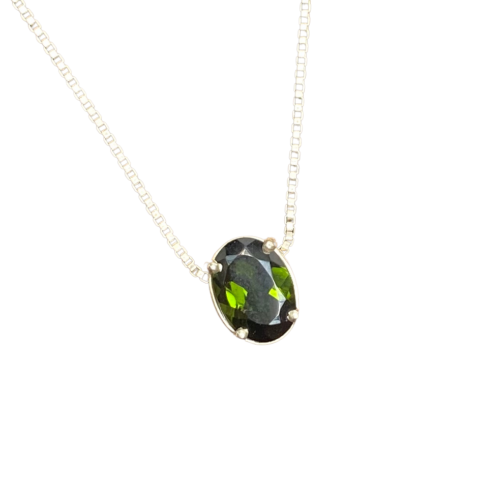 Colar e Pingente de Prata com Turmalina Verde Oval