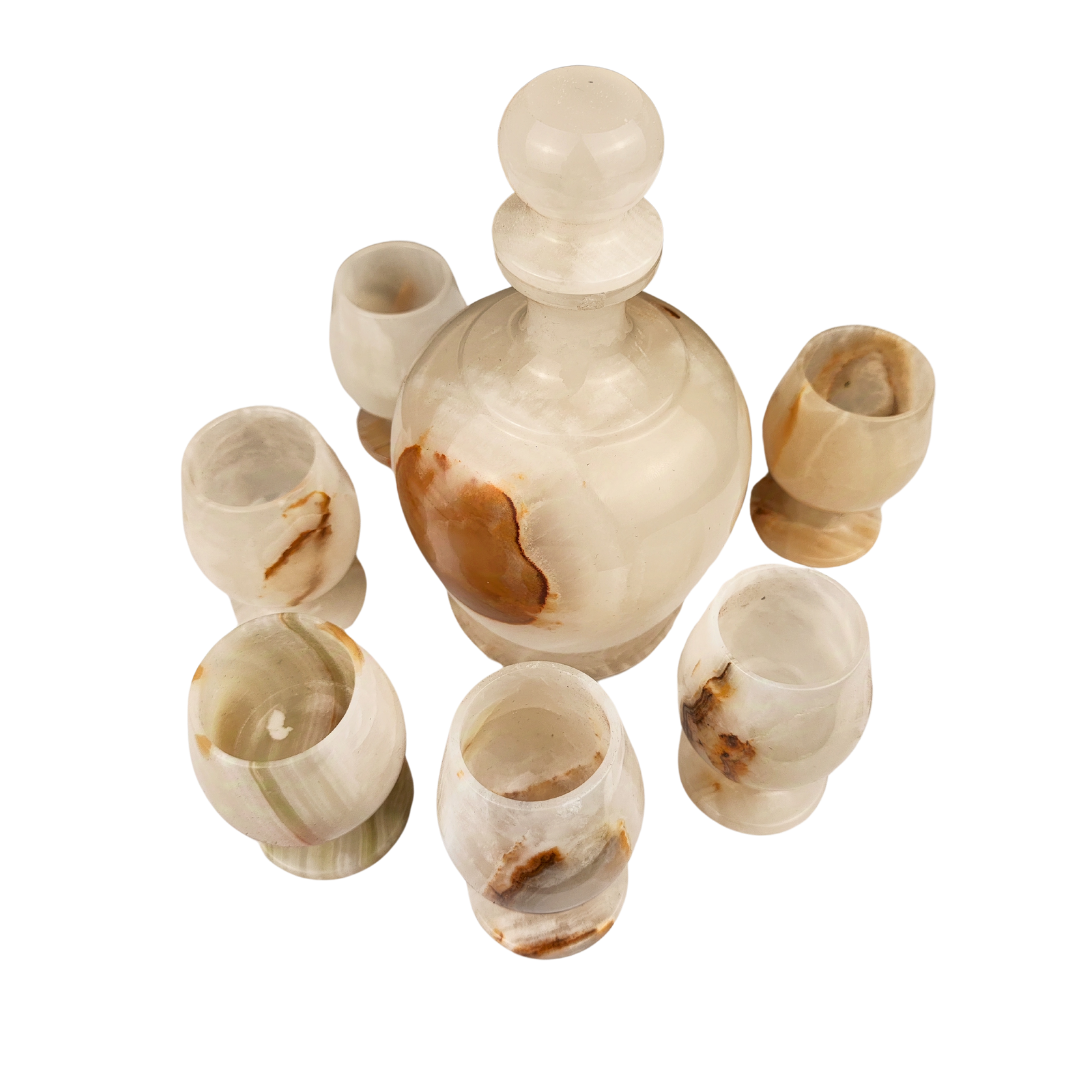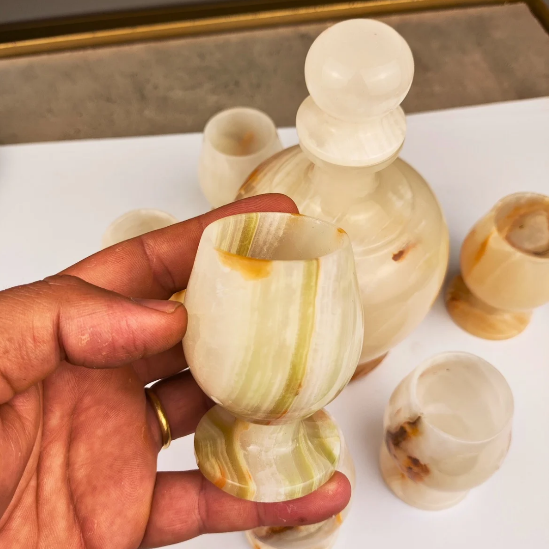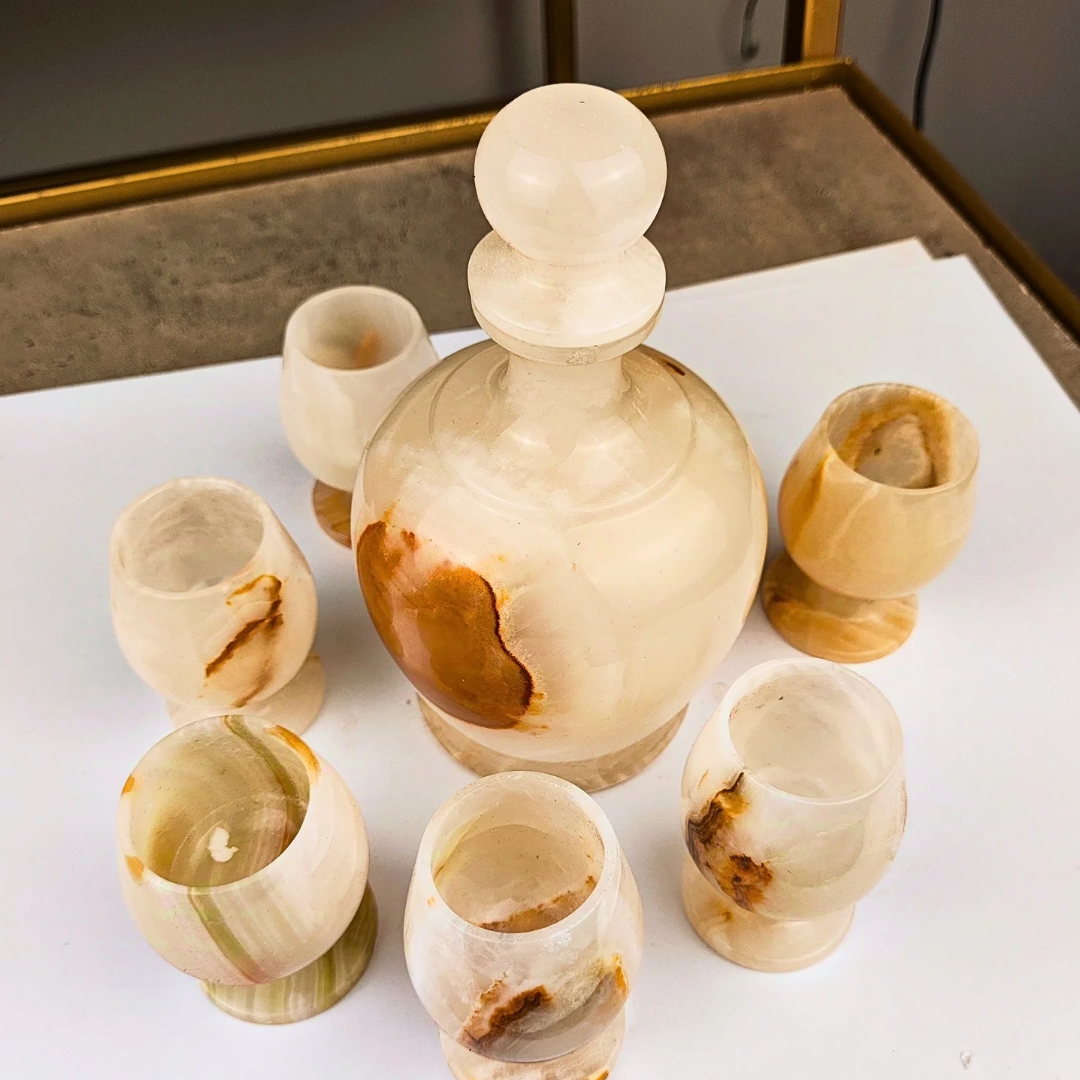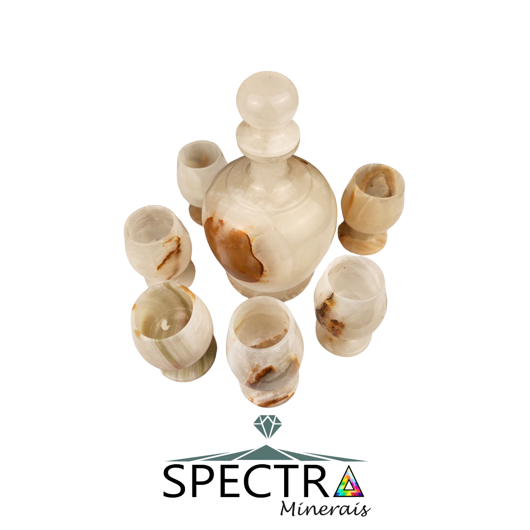 Surpreenda seus convidados com este sofisticado conjunto de licor em ônix paquistanês. Elegância e exclusividade em cada detalhe!