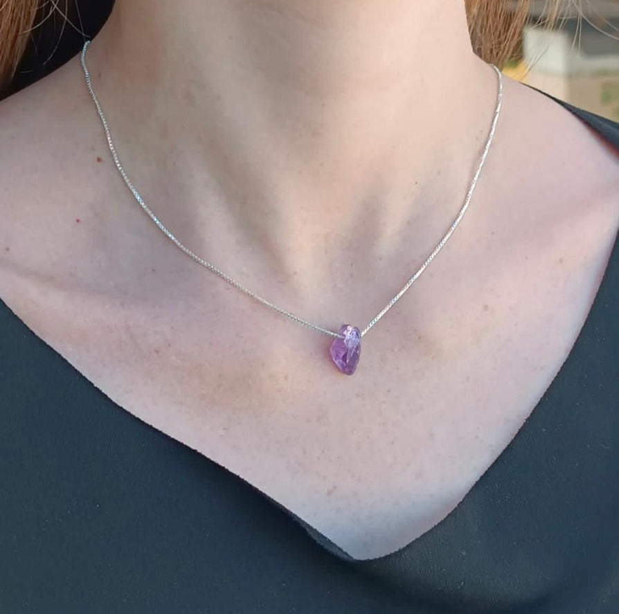 Colar de Santa Hildegarda em Prata: Ametista Bruta e Equilíbrio Natural