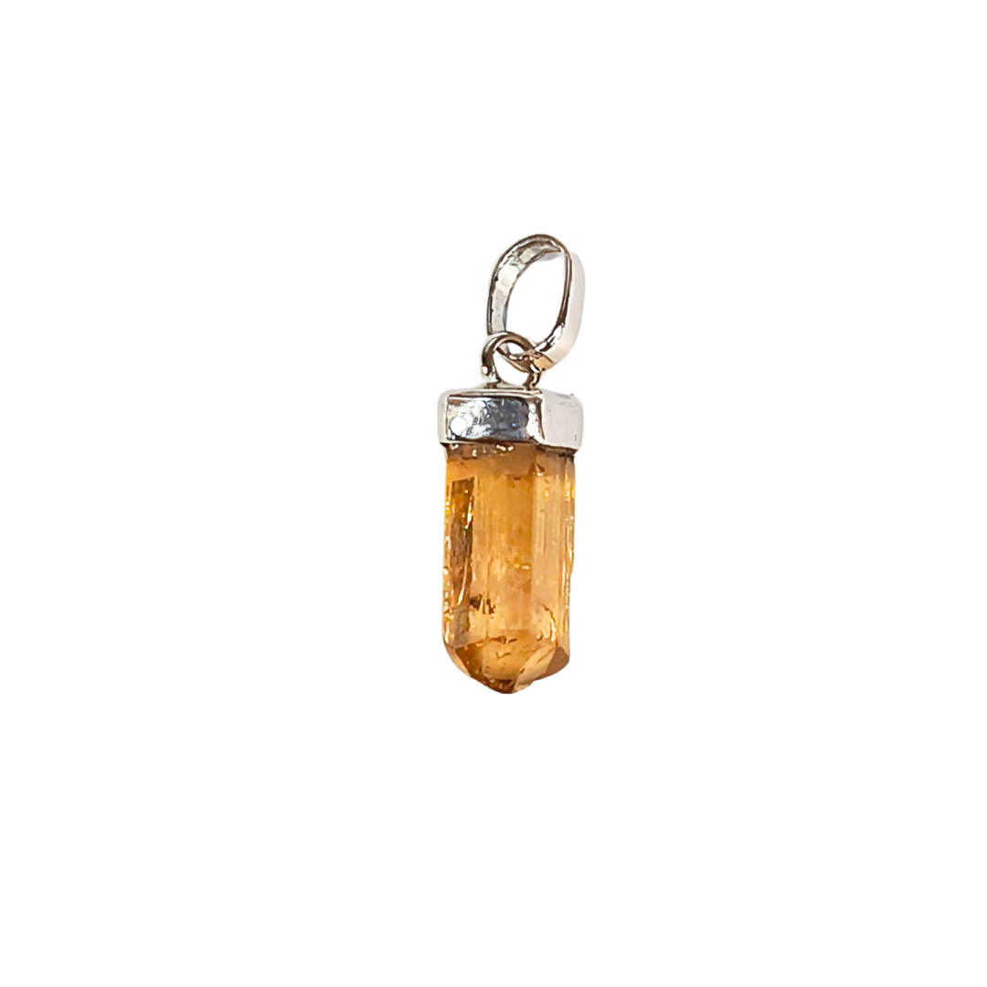 Pingente prata 950 com gema natural de topázio imperial em estado bruto (sem lapidação).