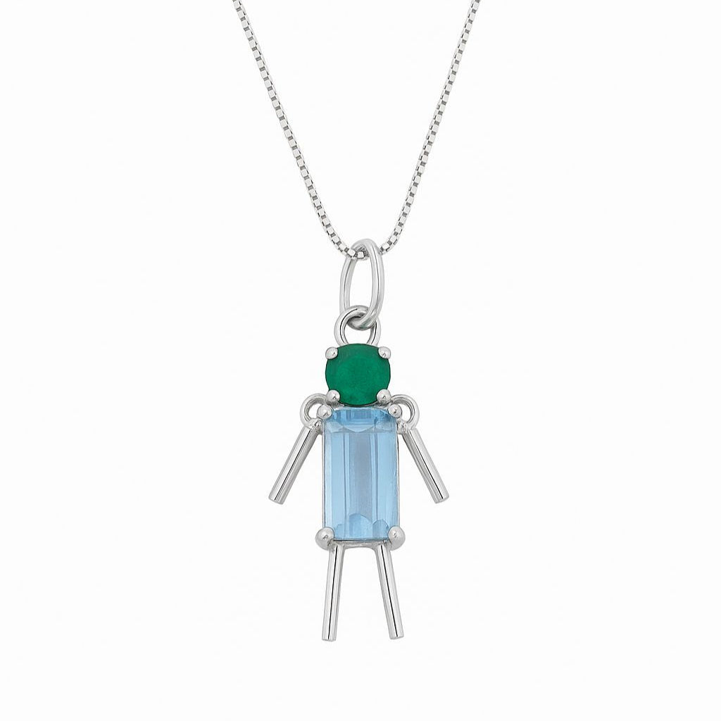 Pingente de Menininho em prata 950, com esmeralda (0,2 quilates) e água marinha retangular (0,4 quilates).