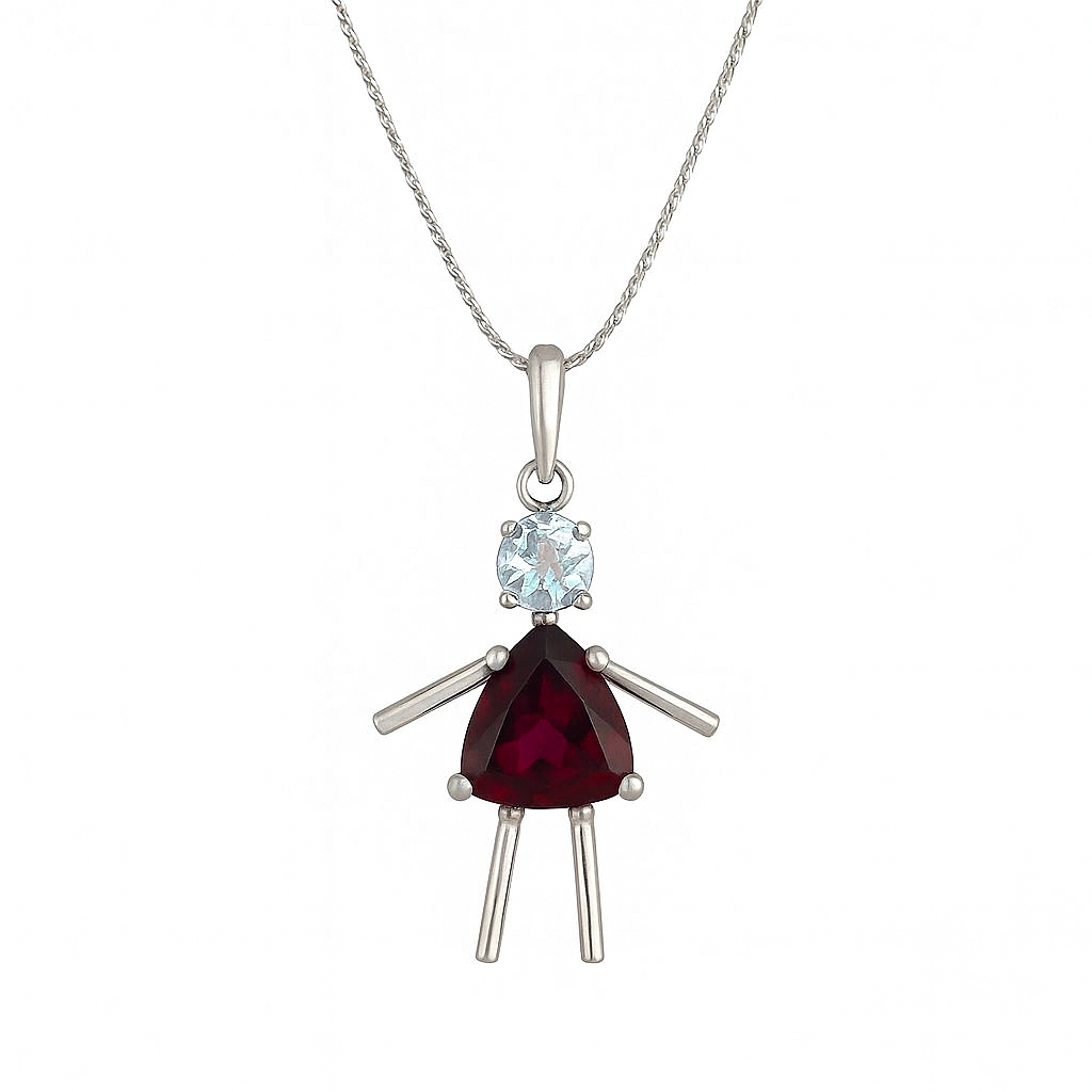 Pingente Menina de Prata com Granada e Água Marinha