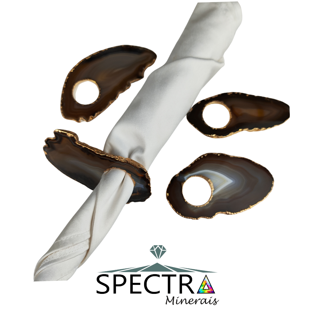 1 porta guardanapo de ágata com banho de ouro nas bordas.