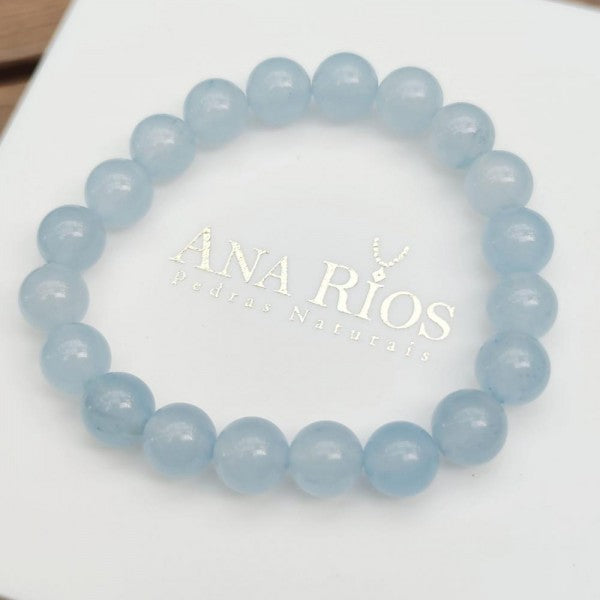 Pulseira confeccionada com fio de silicone e pedras esféricas de calcedônia