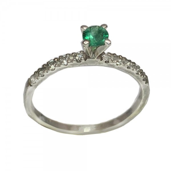 Solitário de Prata 950 com Esmeralda Natural e Zircônias