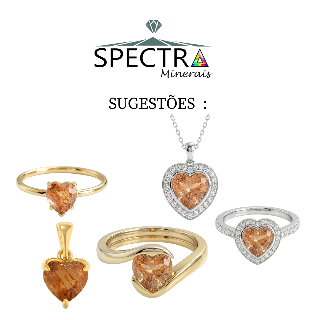 Esta peça apresenta excelente cor natural, lapidação Coração precisa e é extraída em Ouro Preto, Minas Gerais